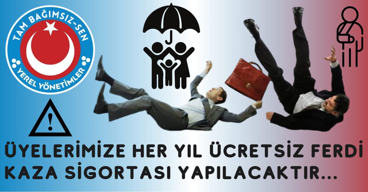 Tam Bağımsız-Sen Yerel Yönetimler, üyelerine iş kazaları ve beklenmedik durumlarda ücretsiz kaza ferdi sigorta sağlamaktadır. Bu sigorta, tedavi masrafları, sakatlık ödemeleri ve vefat durumunda aileye tazminat desteği sunarak çalışanların maddi güvenliğini korur. Üyelerimiz, bu hizmetten ek bir ücret ödemeden faydalanabilir.