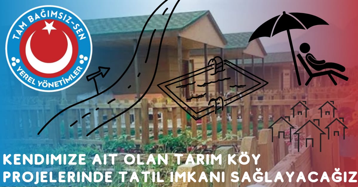 Tam Bağımsız-Sen Yerel Yönetimler, üyelerine kendimize ait tarım köy projelerinde tatil imkanı sunmaktadır. Bu projeler, doğal güzellikler içinde sakin bir tatil deneyimi yaşamak isteyen üyelerimiz için tasarlanmıştır.