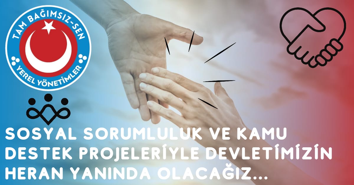 Tam Bağımsız-Sen Yerel Yönetimler, sosyal sorumluluk projeleri ve kamu destek çalışmalarıyla devletimizin yanına olmayı hedeflemektedir. Bu projeler, toplumsal dayanışmayı güçlendirmek, sosyal adaleti sağlamak ve ihtiyaç sahiplerine destek olmak amacıyla hayata geçirilecektir.