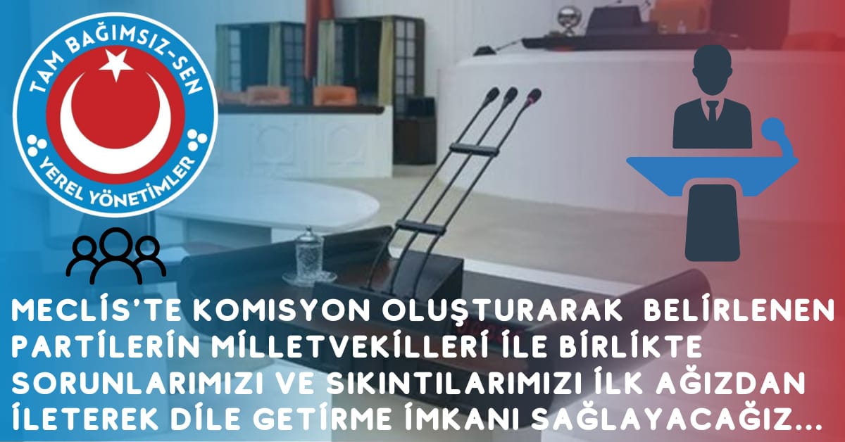 Tam Bağımsız-Sen Yerel Yönetimler, yerel sorunların daha etkili bir şekilde ele alınması ve çözümler üretilmesi amacıyla mecliste komisyonlar oluşturmayı planlamaktadır. Bu komisyonlar, üyelerimizin ve toplumun taleplerini dinleyerek, ilgili konular üzerinde detaylı çalışmalar yapacak ve öneriler geliştirecektir.
